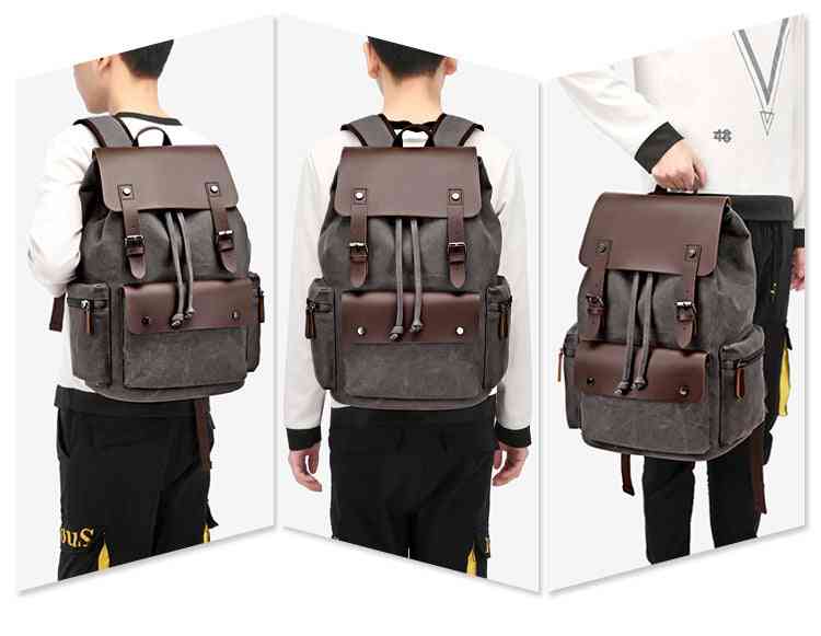 The Heritage Canvas Backpack is designed for the man who views the city as terrain to be explored. The robust Canvas body offers authentic texture and superior durability, while the contrasting details (Popular Elements: Color Block) on the flaps and pockets add a touch of rustic sophistication. The main closure system, combining the classic Drawstring with a protective flap, ensures your belongings are secure yet accessible, evoking the design of vintage military and mountaineering rucksacks.