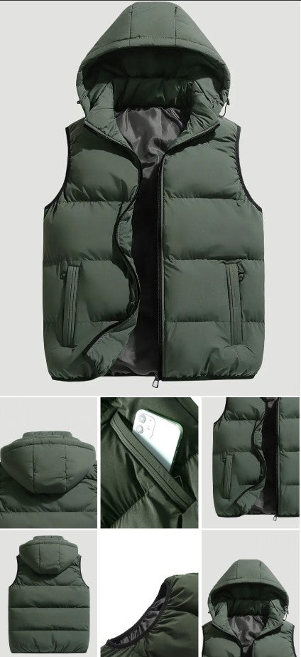 The Hades Hooded Puffer Vest is the smart clothing solution for colder days when mobility is just as important as warmth. Designed in a Basics Style, its quilted look in a solid color (black, in the image) is versatile and easy to layer over sweaters or hoodies. Constructed with 100% Polyester in the shell and lining, the vest guarantees a soft touch and excellent thermal insulation. The hooded design and central Zipper and side pockets enhance its functionality for Daily & Casual wear.